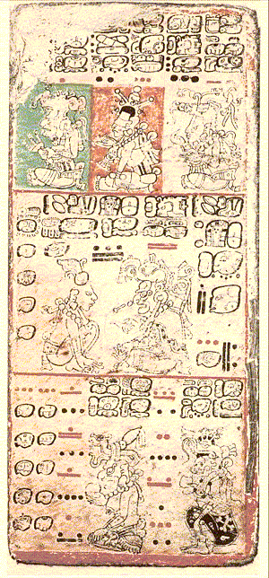 Es el más elaborado de los códices. Es un calendario mostrando qué dioses influyen en cada día. Explica detalles del calendario maya y el sistema numérico maya.